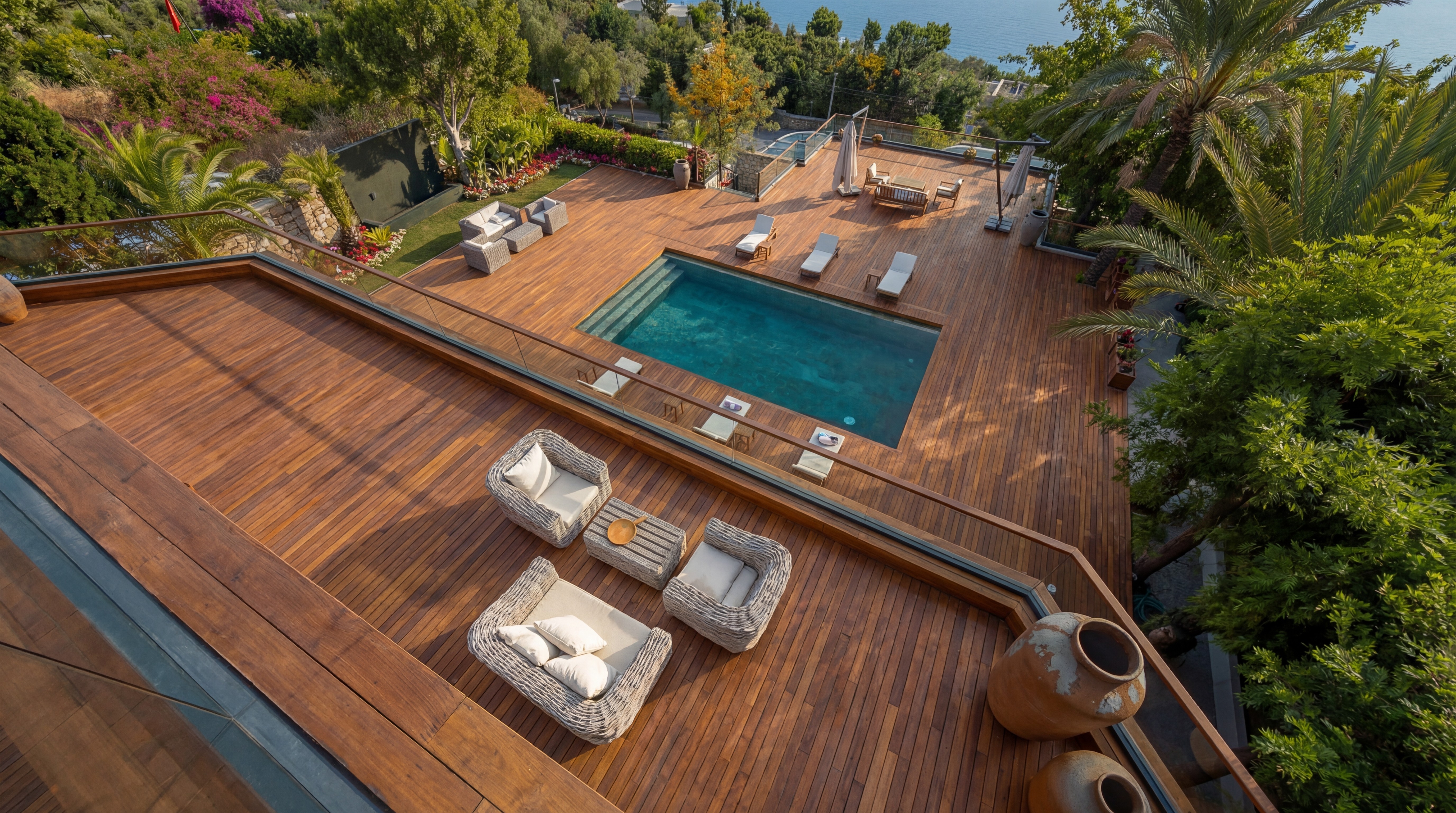 Private swimming pool with dedicated sun deck and lounging areas
